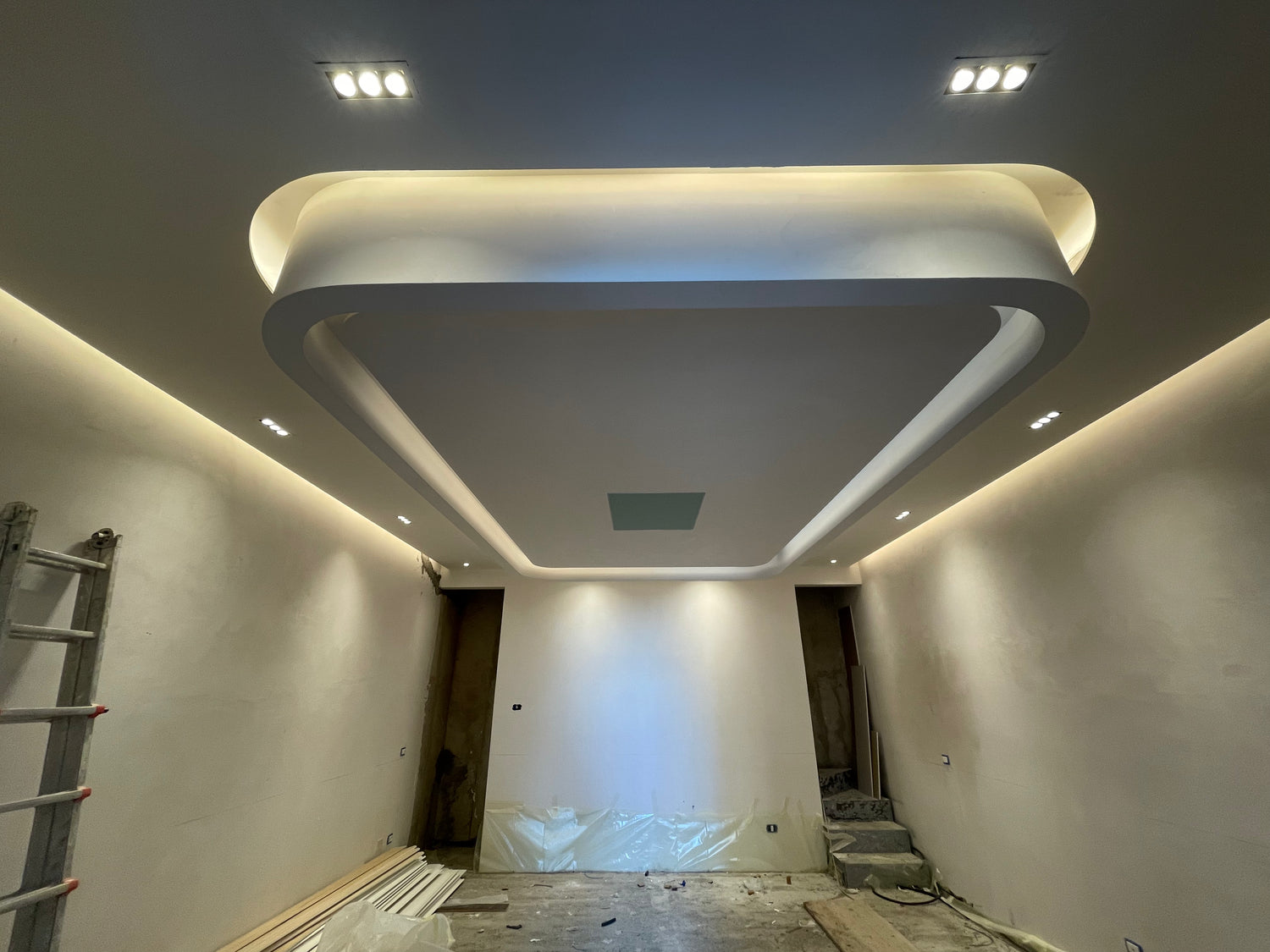 Un soffitto con unghiature realizzato è una soluzione architettonica elegante e versatile, capace di conferire agli ambienti un aspetto morbido e raffinato. Le unghiature sono rientranze curve che si formano nei punti di raccordo tra la superficie del soffitto e le pareti laterali, creando una transizione dolce e continua senza angoli netti. Questo tipo di design è particolarmente apprezzato per ambienti sofisticati, dove si desidera un effetto armonioso e avvolgente.
