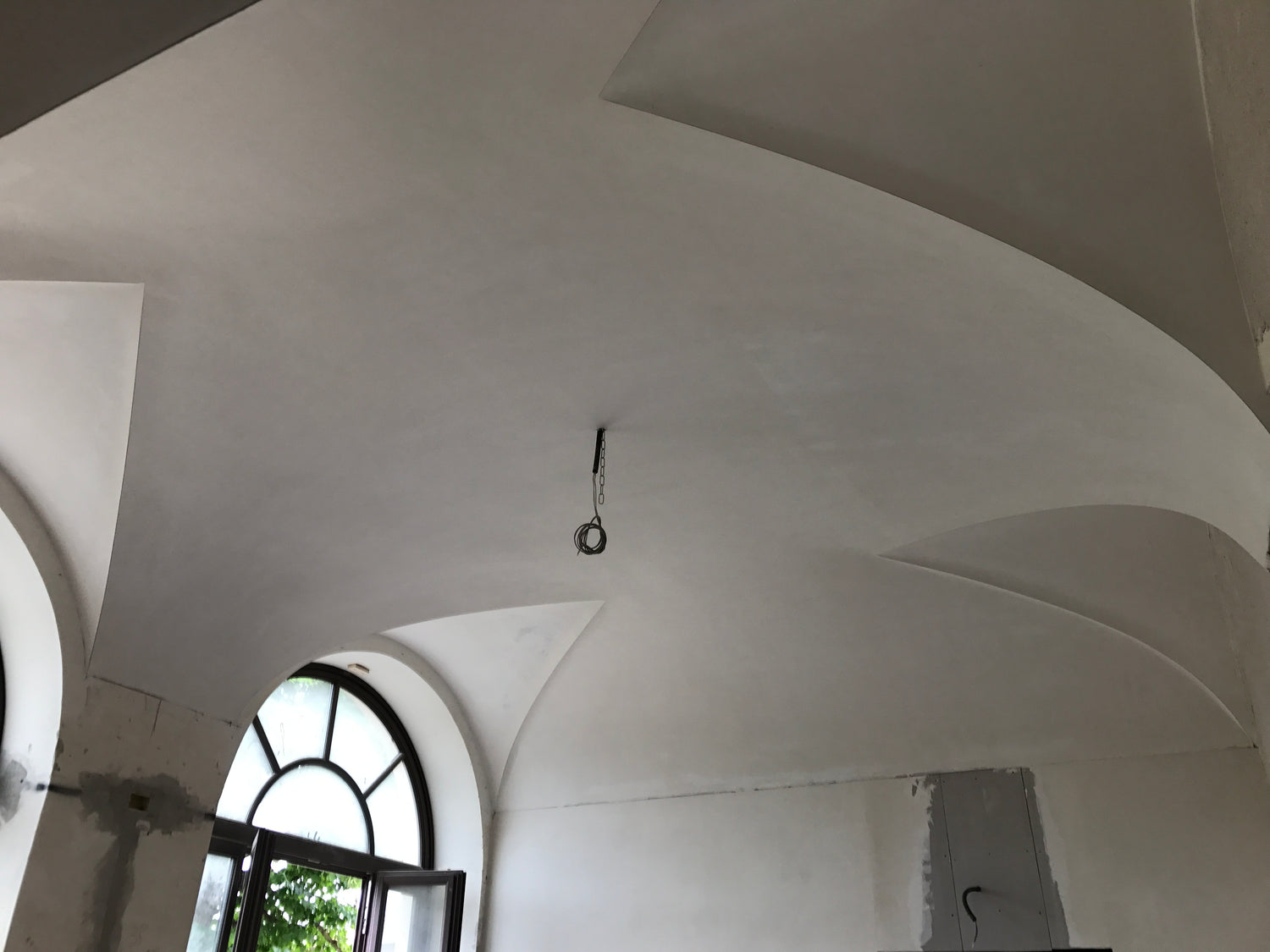 In una fase successiva al consolidamento, si è proceduto con la rimozione controllata delle parti di gesso compromesse. Gli elementi decorativi in gesso, come modanature e fregi, sono stati accuratamente recuperati, catalogati e, dove necessario, ricostruiti con tecniche artigianali, utilizzando malte compatibili con i materiali originali.